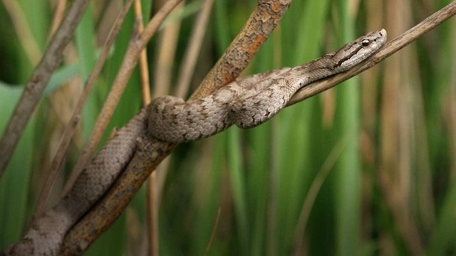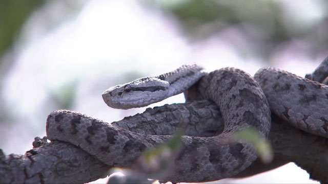 Một con rắn lục đang leo lên cành cây để bắt chim. (Ảnh: CGTN).